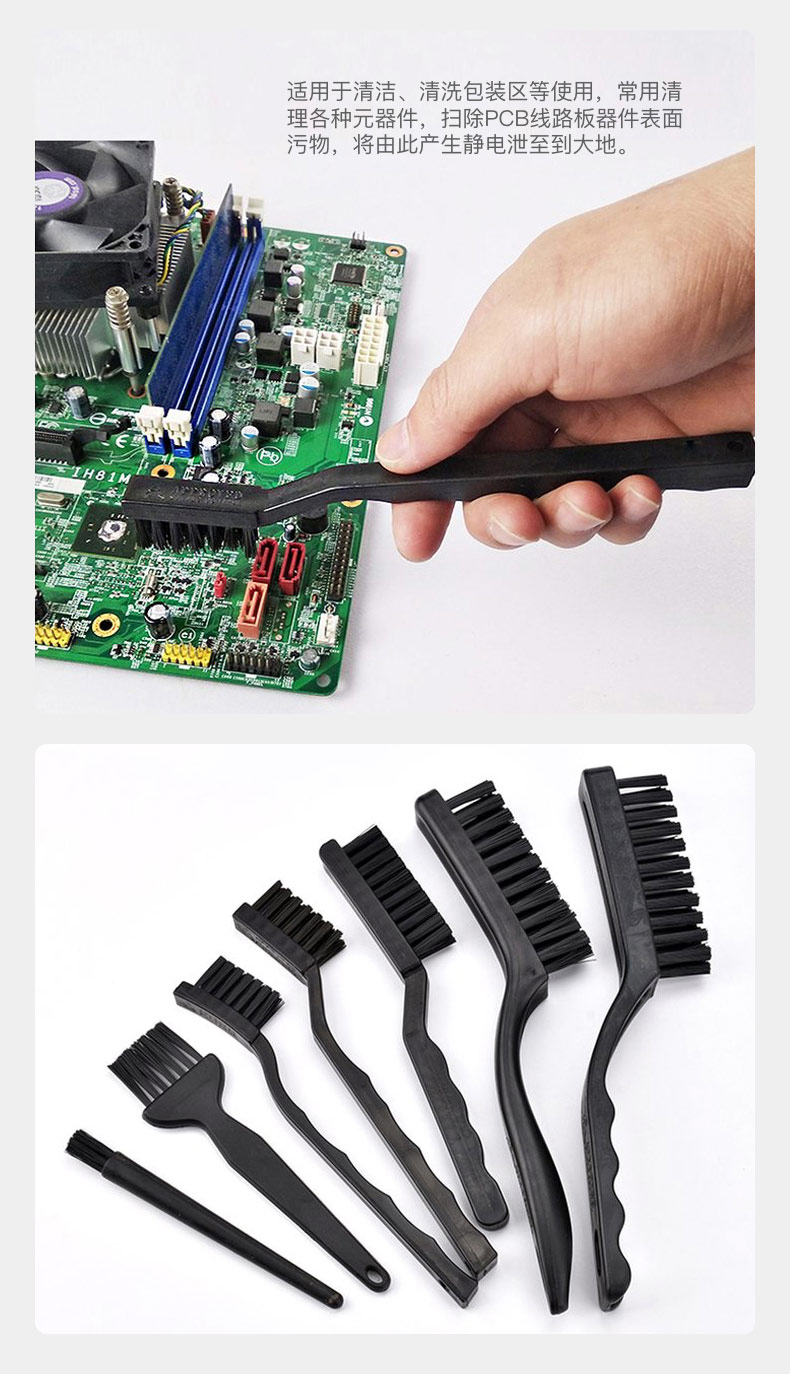 防静电牙刷型刷子又可分为:大、中、小三种,适用于清理各种电子元器件、PCB板等,也可刷洗PCB板。